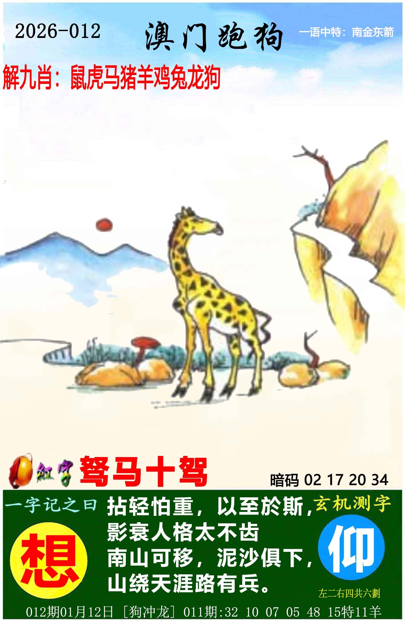 012期【单(兔猪牛羊)双(狗鼠虎龙)】开:??准